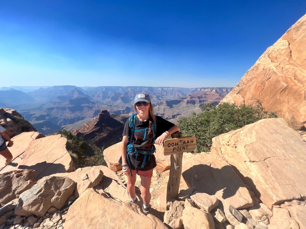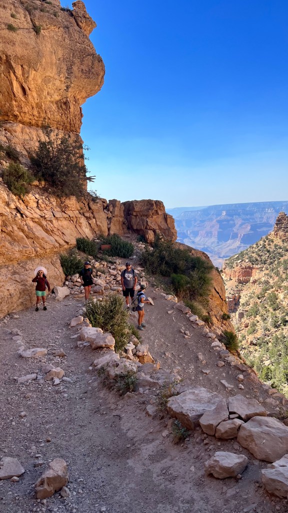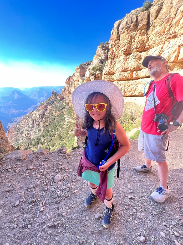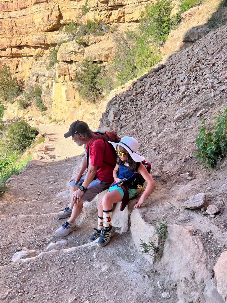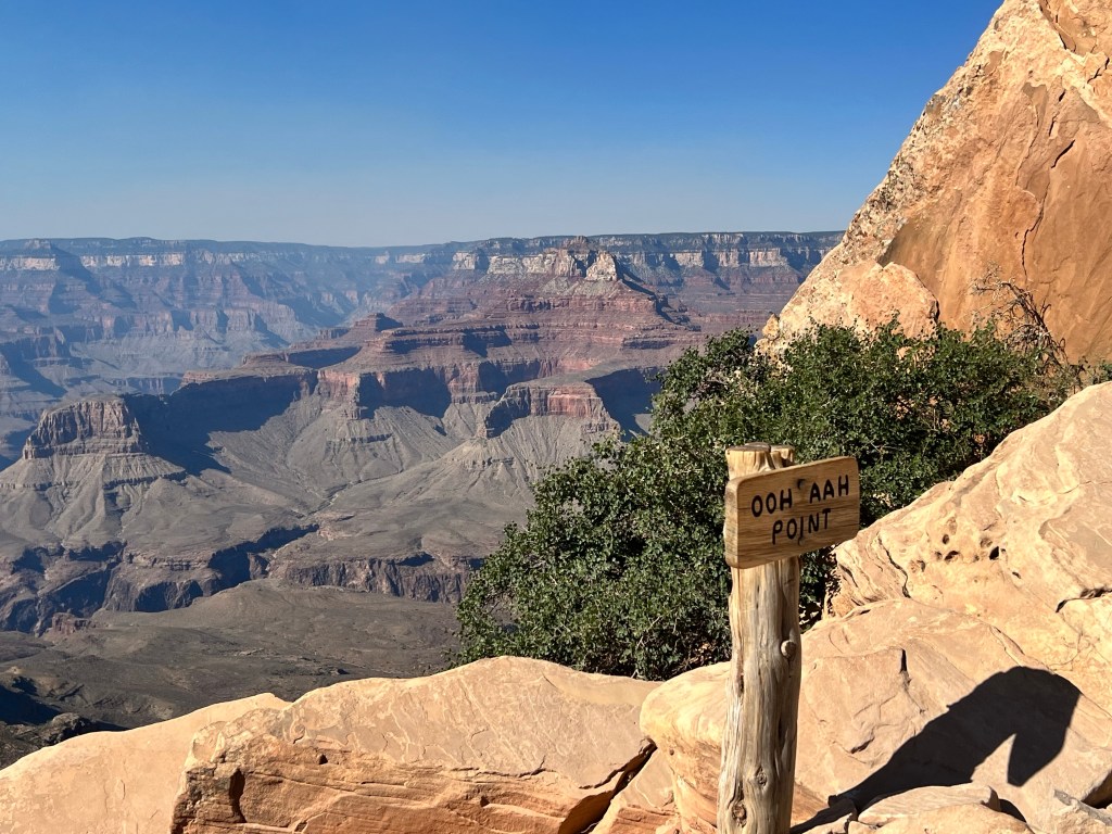 We hiked to Ooh Aah Point, which was around 2 miles and 2 hours, in a heat advisory. Sam did a full hike to the bottom of the Grand Canyon.