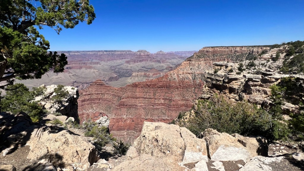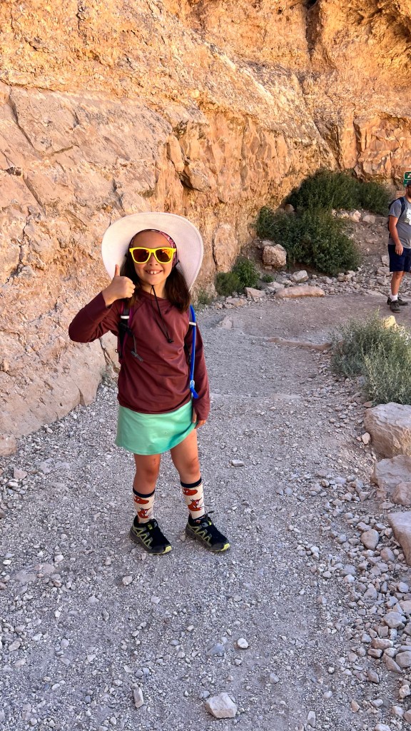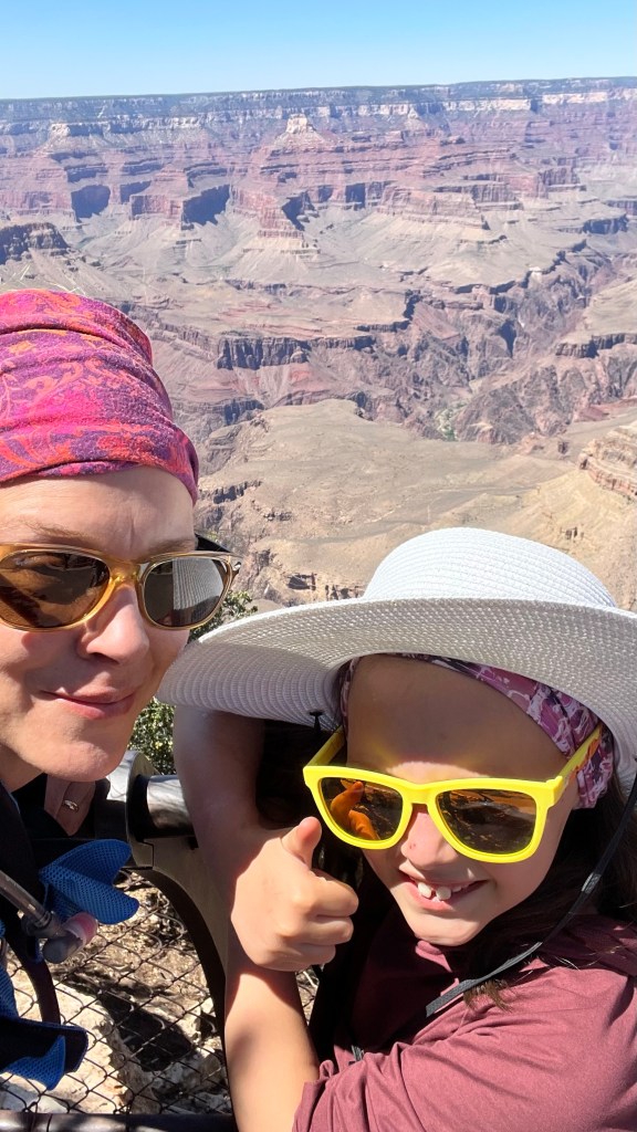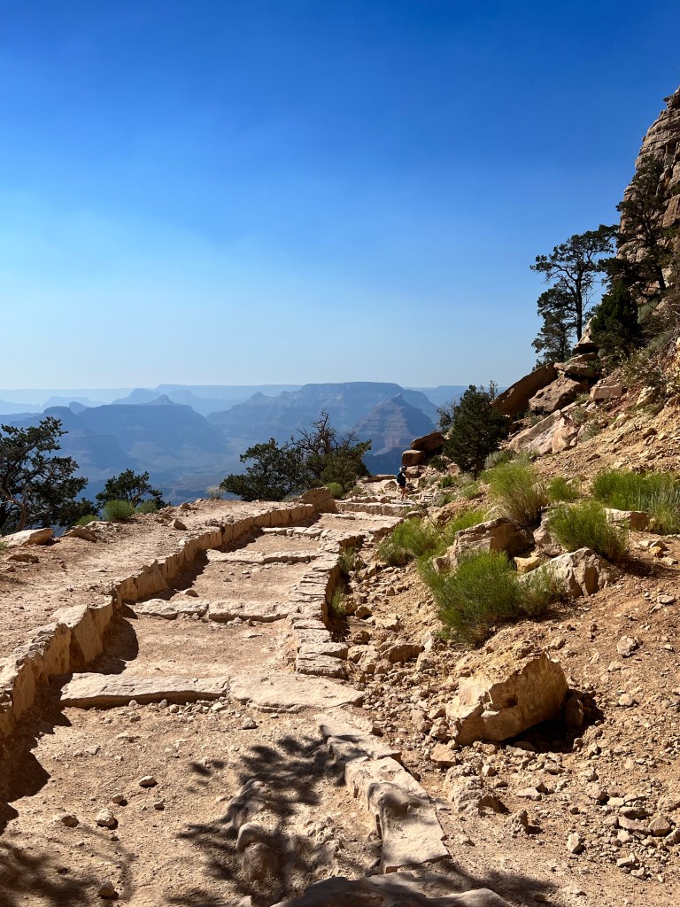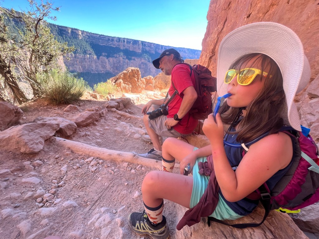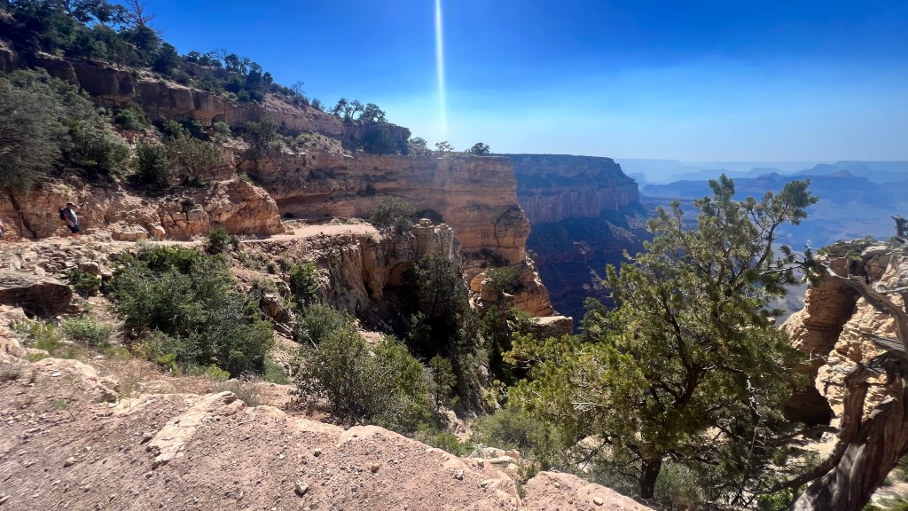 We hiked to Ooh Aah Point, which was around 2 miles and 2 hours, in a heat advisory. Sam did a full hike to the bottom of the Grand Canyon.