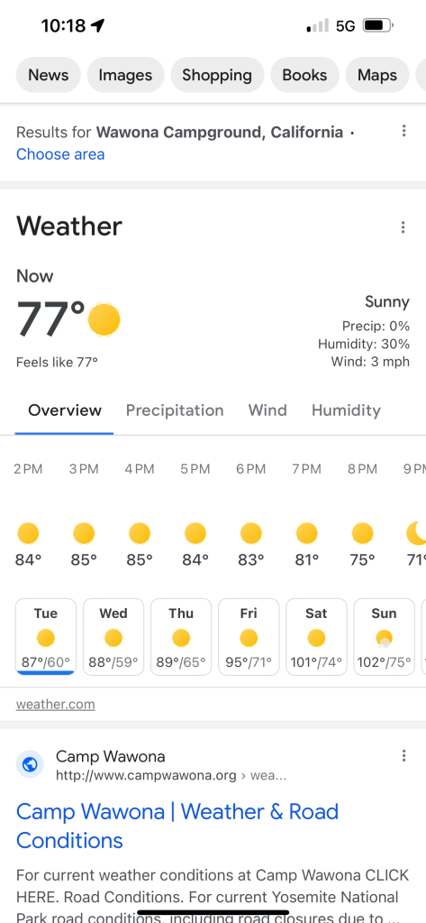 The South Fork Merced Is over runs so loudly that it almost sounds like heavy wind or rain but it’s a lovely white noise. The nights have been cool, cold even. This is our morning view: