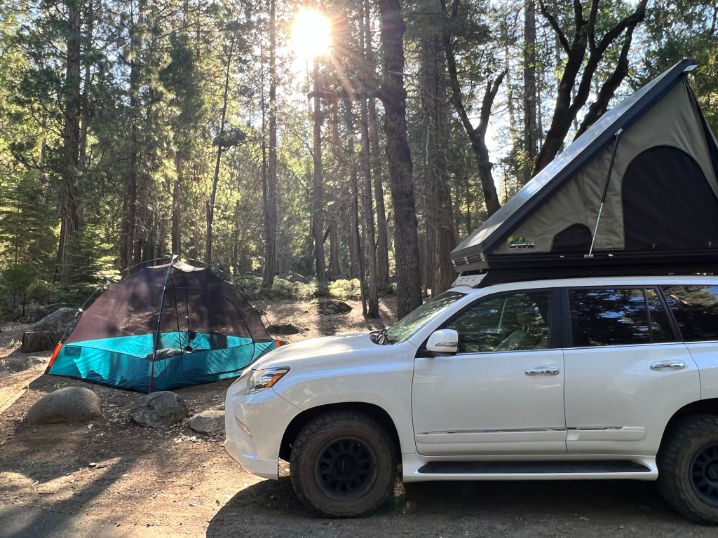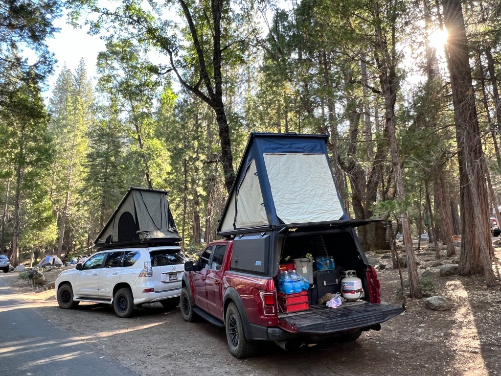 We started out on night one with sites 30 and 32, but ended up with both cars on 32. Today we were. Supposed to move for two nights to 36 and 12 but elected to move both cars to 11, right on the river. The Half Dome hike hit obstacles and we all ended up accidentally hiking over 2 miles to the visitor center.