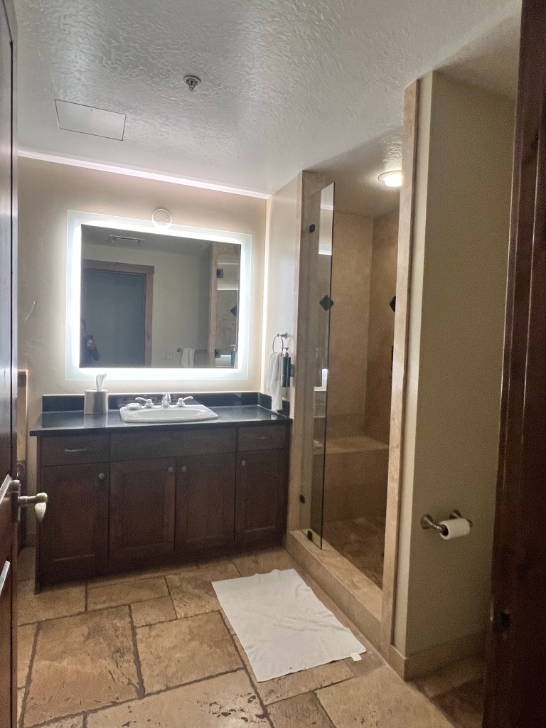 We got into Park City after midnight. I have no idea yet what it looks like outside but we’re in a pretty sweet suite at the Hilton Grand Vacations Sunrise Lodge. We have 3 bedrooms here and 4 full bathrooms, full kitchen and our own laundry, plus there is a laundry room just outside our door, included. While we are enjoying the short stay here immensely we have to check out by 11. Yellowstone National Park is about 6 hours away but I think this town needs some exploring.